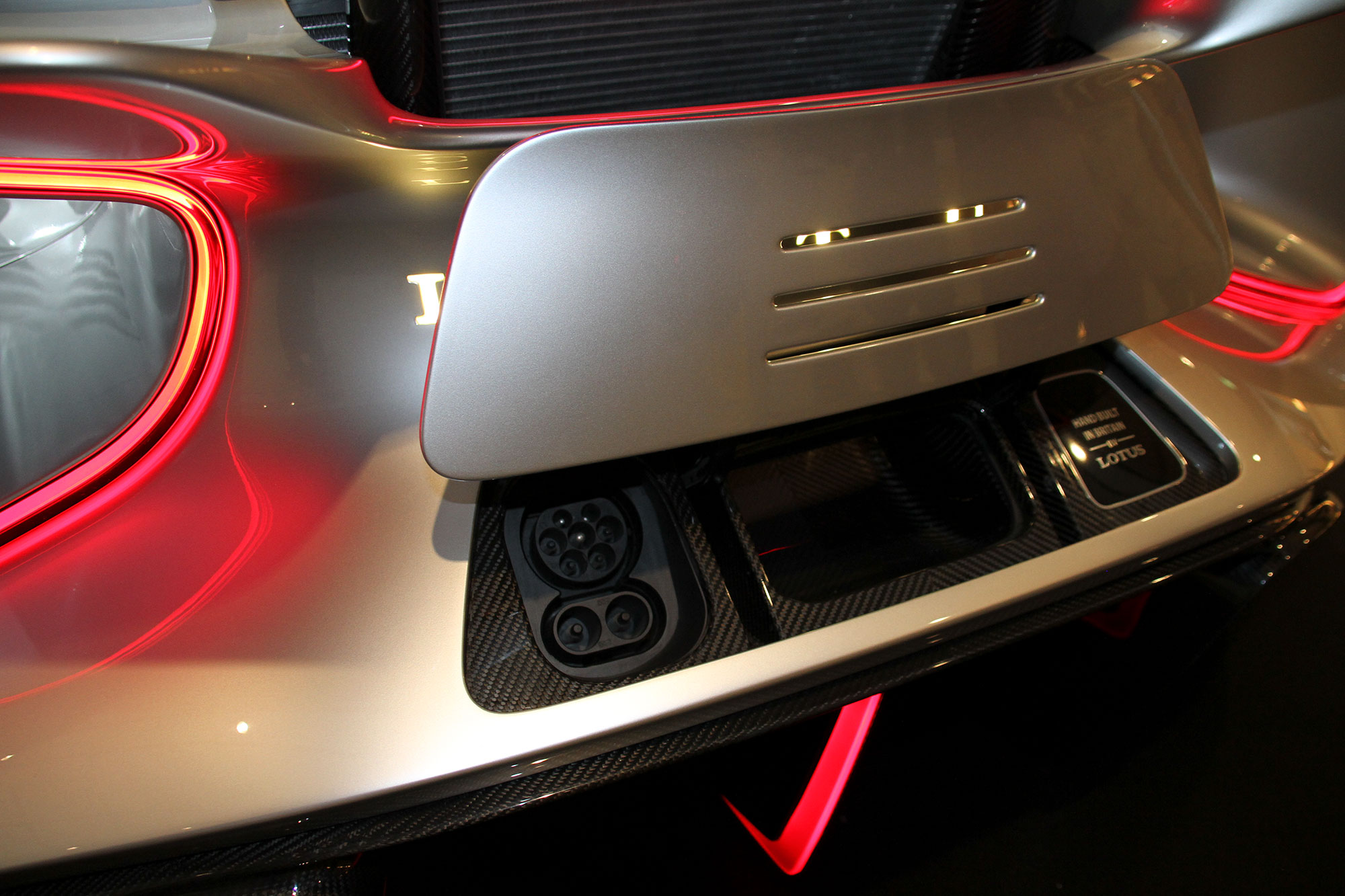 LOTUSの文字の下の切り欠きの中に充電口があります。