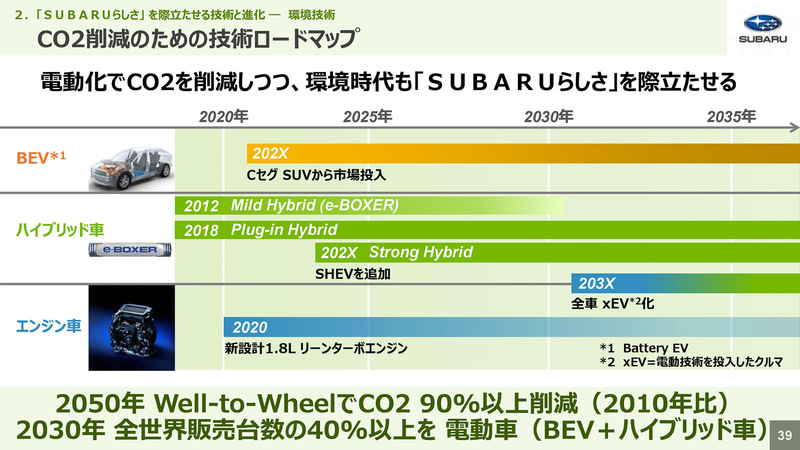2030年代前半には、販売するすべてのスバル車に電動技術を搭載する。