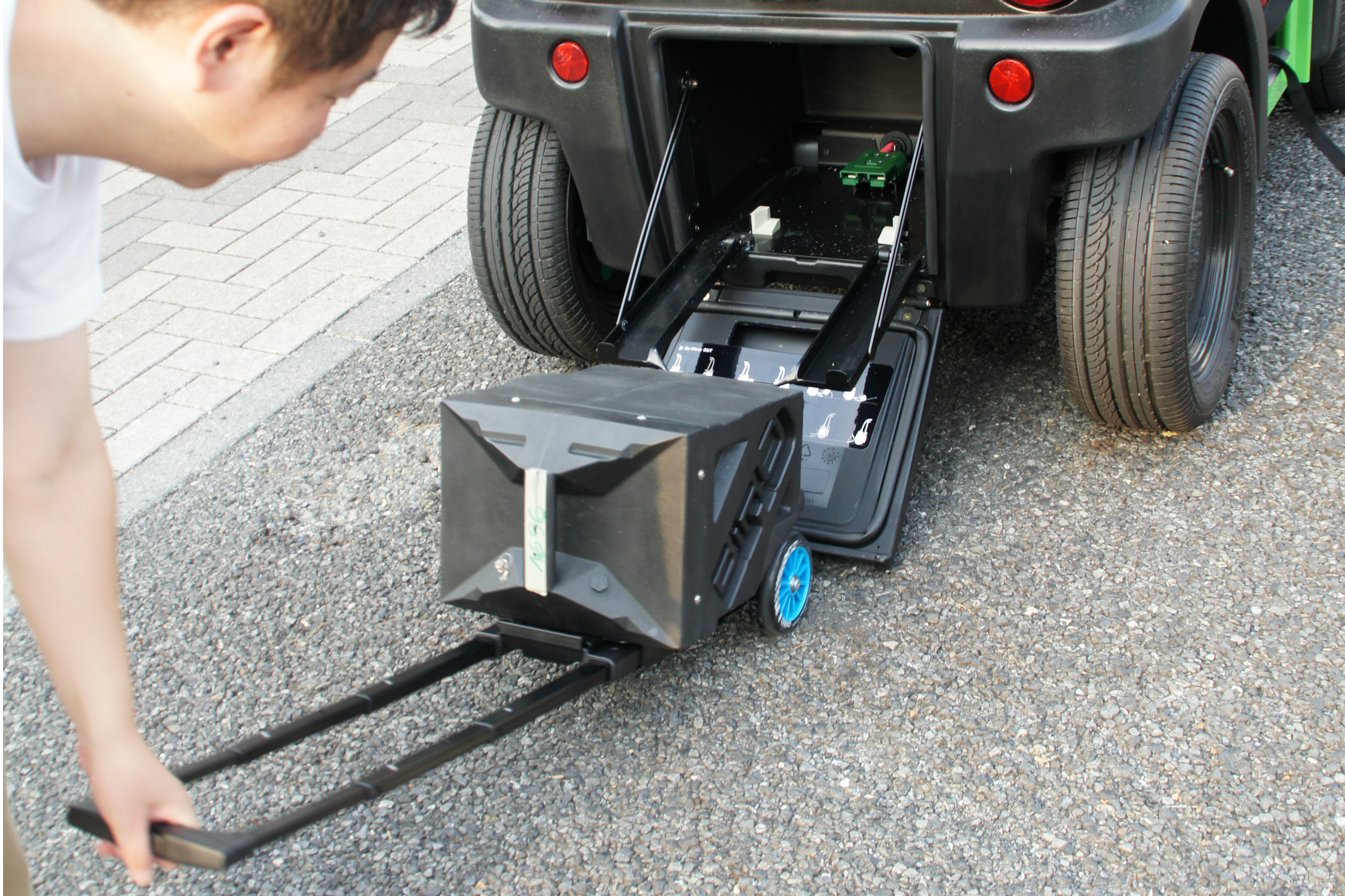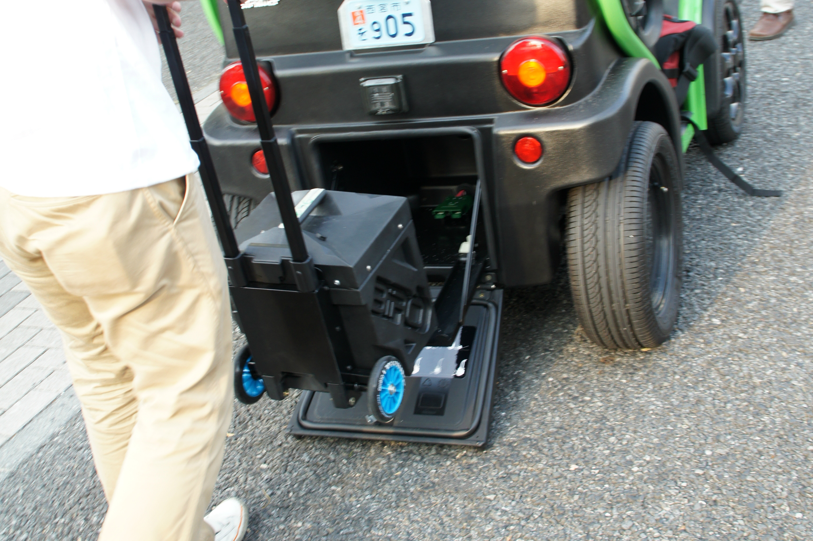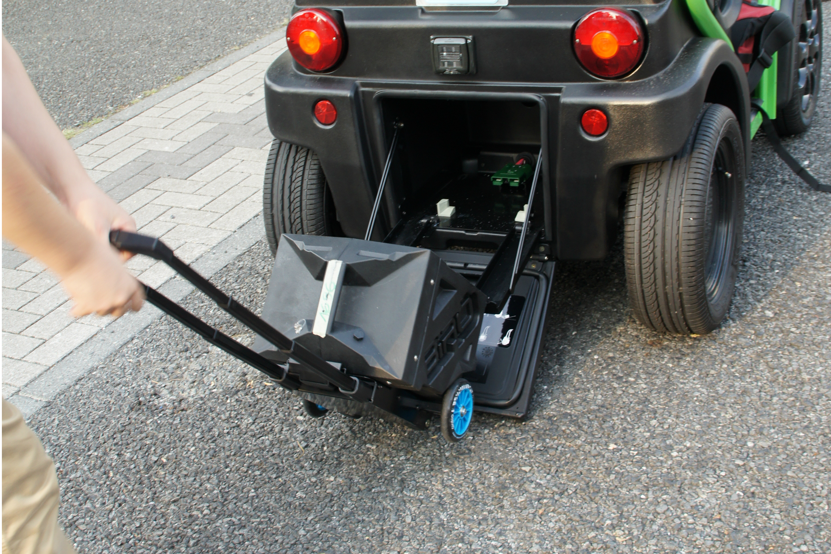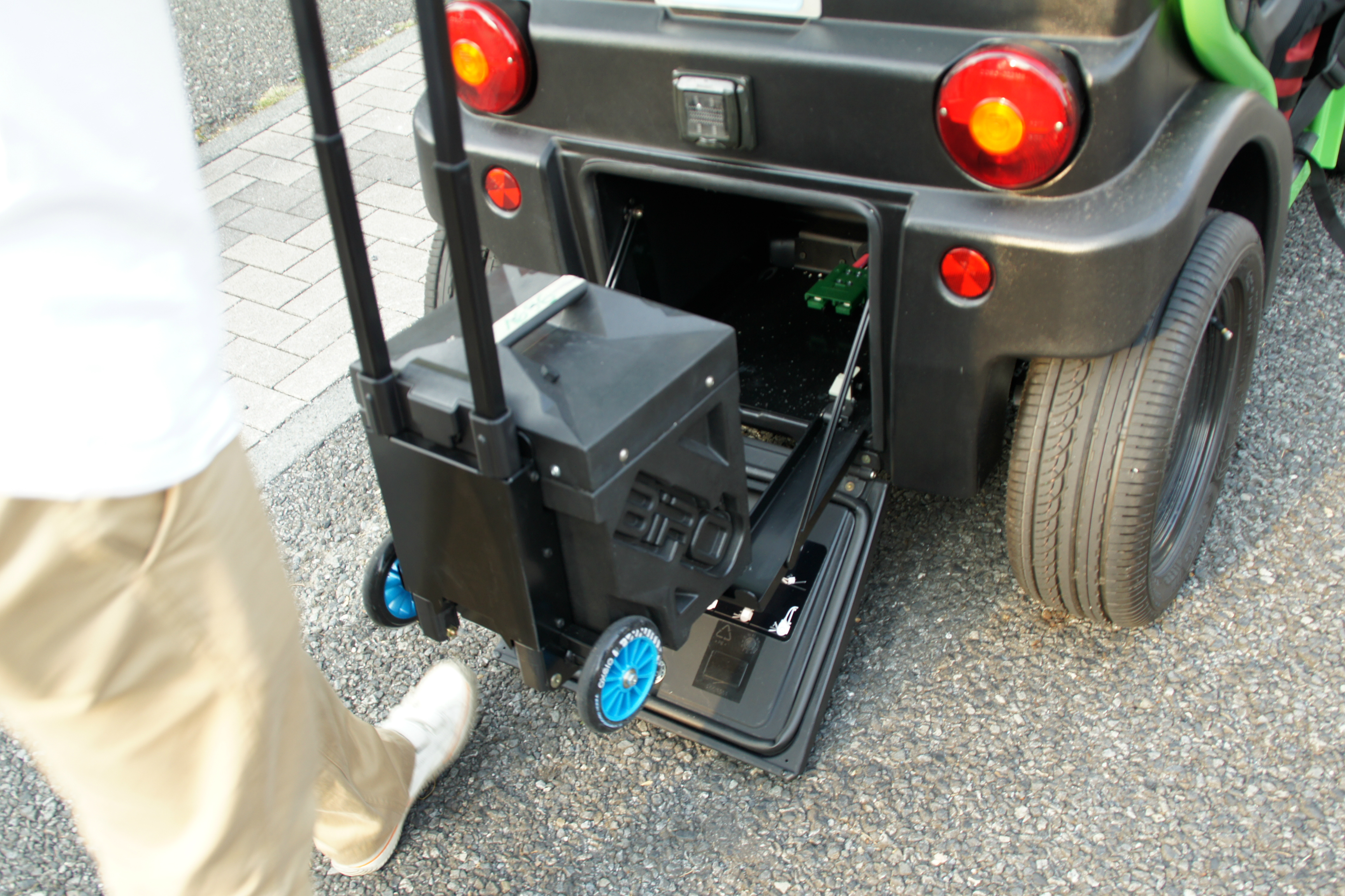 カバーを開けると取って取っ手付きのバッテリーが見えます。